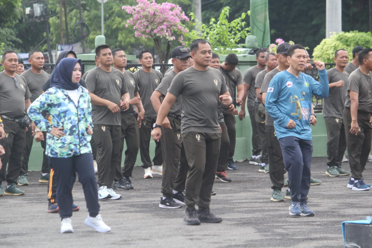 Kegiatan senam bersama ini menjadi ajang mempererat sinergitas antara TNI, Polri, dan pemerintah daerah. Dengan semangat kebersamaan, seluruh peserta terlihat antusias mengikuti gerakan senam yang dipandu oleh instruktur.
